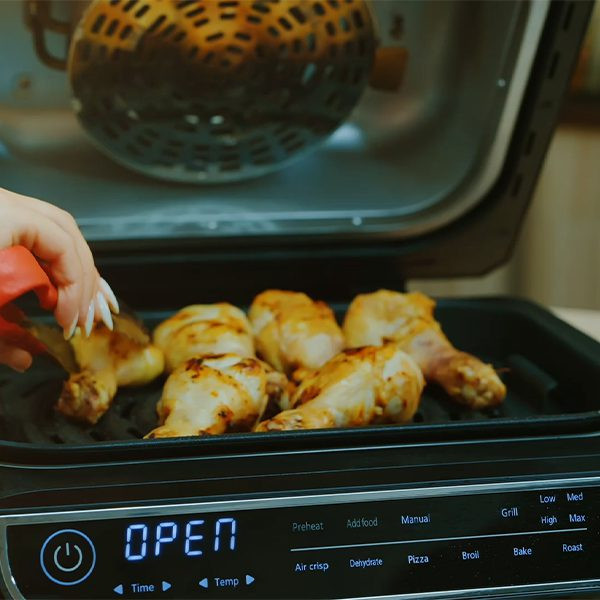 لوازم جانبی استاندارد : رنده گریل، سبد ترد، قابلمه پخت و پز و برس تمیز کننده. سینی پخت و پز، سبد سرخ کن بادی و صفحه گریل از روکش سرامیکی نچسب