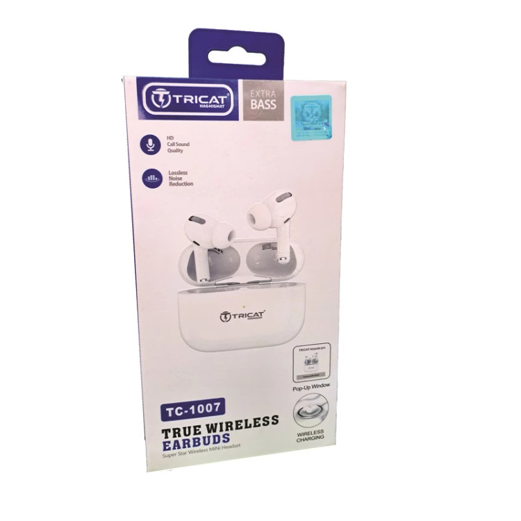 شرکت تریکت یک برند جدید و بسیار باکیفت در زمینه تولید لوازم جانبی می باشد که با استفاده از مواد اولیه مرغوب و دانش فنی بروز اقدام به ارائه محصولاتی بی نظیر از هر لحاظی می کند. ایرپاد مدل 1007یک ایرپاد درجه 1 می باشد که به دلیل استفاده از چیپ بلوتوث ورژن 5.3 خیال شما را بابت عدم تاخیر در مکالمه و کیفیت در هنگام پخش موزیک راحت می کند و تا فاصله 15 متری هم برد مفید دارد . باتری دستگاه باتری پر قدرت 300 میلی آمپر می باشد که با هر بار شارژ کامل هر گوشی حدود 5 ساعت استفاده مداوم را برای شما فراهم می کند . در کنار هر گوشی نیز پنل لمس طراحی شده که میتوان از آن برای قطع و وصل تماس و همچنین جابجایی و قطع و وصل موزیک نیز استفاده کرد. کیس این دستگاه دارای فناوری شارژ بی سیم میباشد که میتوان با قرار دادن کیس بر روی پنل شارژ بی سیم بدون استفاده از کابل اقدام به شارژ دستگاه نمود . میکروفن های استفاده شده در این مدل دارای فناوری LNR (Lossless Noise Reducion) که باعث می شود در هنگام مکالمه صدای محیط اطراف کمتر منتقل شود . این دستگاه با تمامی گوشی های آیفون و اندروید سازگاری کامل دارد.