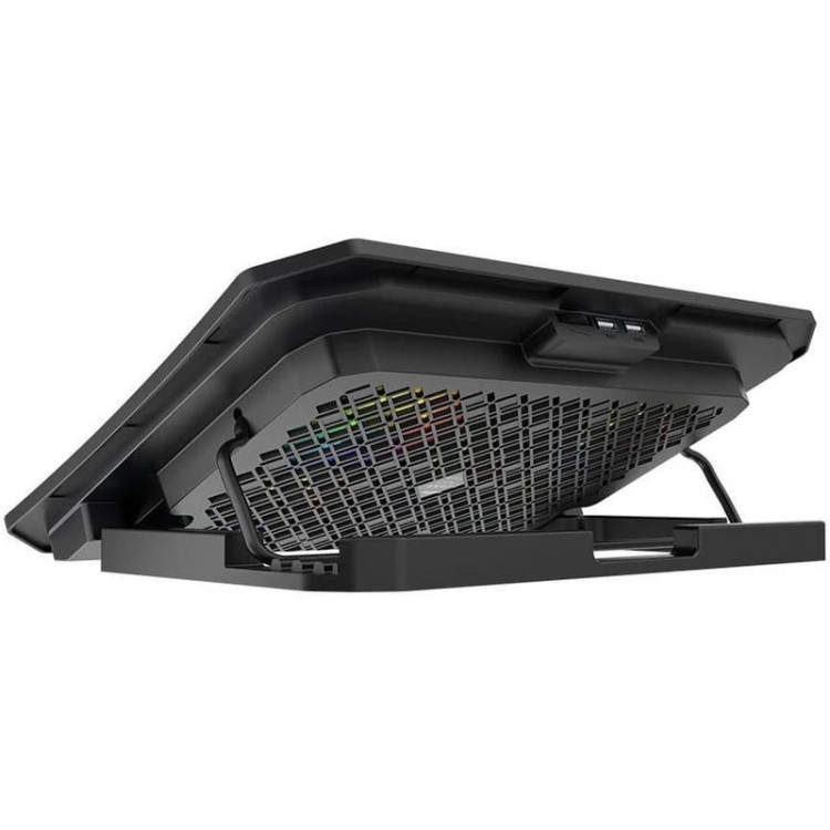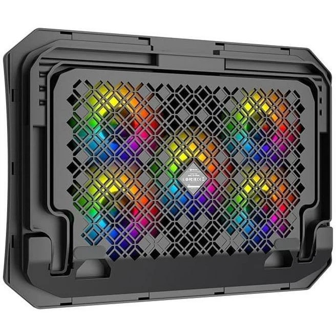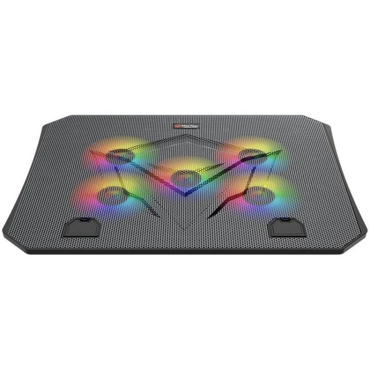 پایه خنک کننده لپ تاپ میشن Meetion MT-CP3030 Cooling pad for laptop فن لپ تاپ ها یکی از نقاط حساس و مهم آنهاست که معمولا هم پایین بدنه و نزدیک به محل تماس با سطح زمین است. با اینکه خود لپ تاپها به واسطه پایه معمولا اندکی از زمین فاصله دارند ولی باز هم هنگام پردازشهای سنگین داغ میکنند. برای اینکه چنین اتفاقی نیفتد باید بین فن و زمین فاصله وجود داشته باشد تا جریان هوا به خوبی صورت گرفته و CPU را خنک کند. کمپانی میشن با تولید کول پد Meetion MT-CP3030 راهکاری ساده برای حل این مشکل ایجاد کرده است. مشخصات کول پد Meetion MT-CP3030 پایه خنک کننده لپ تاپ میشن MT-CP3030 از فلز و پلاستیک مقاوم ABS استفاده شده است. این کول پد برای لپ تاپ های 9 تا 15.6 اینچ مناسب خواهد بود. ابعاد این کول پد دارای ابعاد 370x265x32 میلی متر بوده و وزن آن حدود 740 گرم می باشد. کول پد Meetion MT-CP3030 دارای 5 فن به همراه نورپردازی RGB می باشد. فن های پنج گانه توربوی پرسرعت داخلی باعث شده گرما با سرعت بیشتر از لپ تاپ شما رفع شود. چراغ های استفاده شده در این محصول LED می باشد. کول پد Meetion MT-CP3030 دارای 2 درگاه USB است که به شما این امکان را می دهد از لپ تاپ خود برای تغذیه پایه و اتصال دستگاه های دیگر استفاده کنید. خنک کننده لپتاپ میشن قابلیت تنظیم شیب (3 حالت) را داشته و شما می توانید با توجه به شرایط خود آن را تنظیم کنید